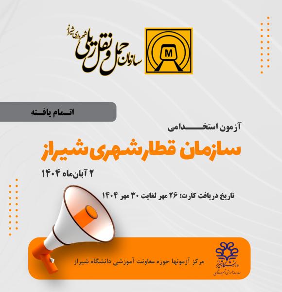 دانشگاه شیراز اقدام به برگزاری آزمون استخدامی جهت تکمیل نیروهای متخصص برای سازمان قطارشهری شیراز می‌نماید.